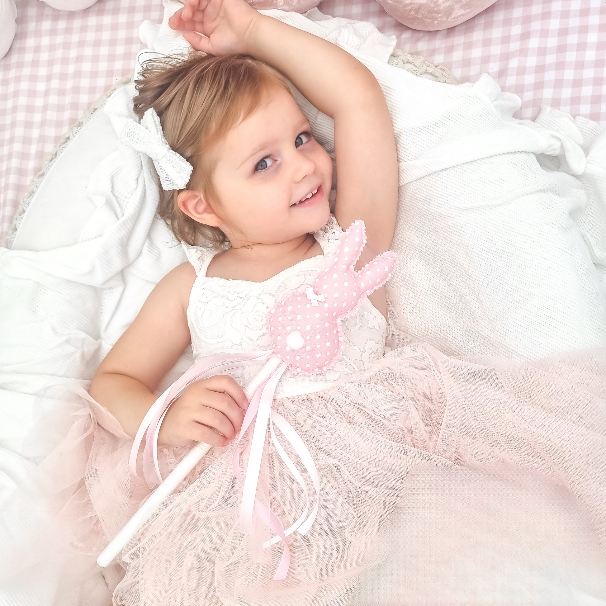 Important Information: Wands are approx 37cm long from top of ears to bottom of stick. Due to all products being handmade please allow 1-2cm variance. Ribbons attached to each wand to best suit the fabric colours & style, note they may not always be the same and are subject to availability.