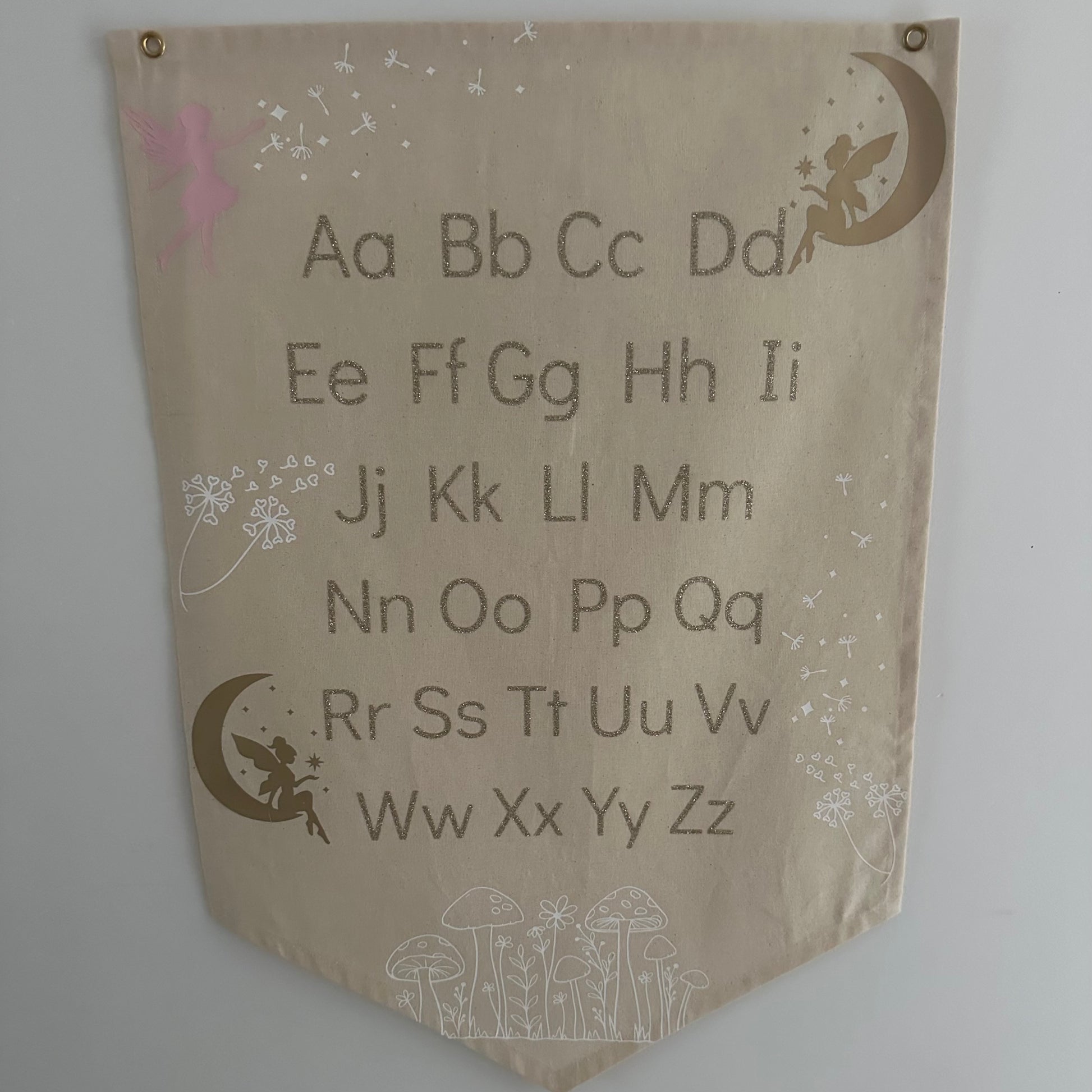 Introducing educational and fun elements into your child's play and bedroom decor with ABC Banners. Featuring a fairy design, our banners showcase both lower and upper case letters also available numbers 1-20 for learning opportunities. Inspire creativity and learning with our playful yet informative banners. Range of colour options to suit your style and themes.