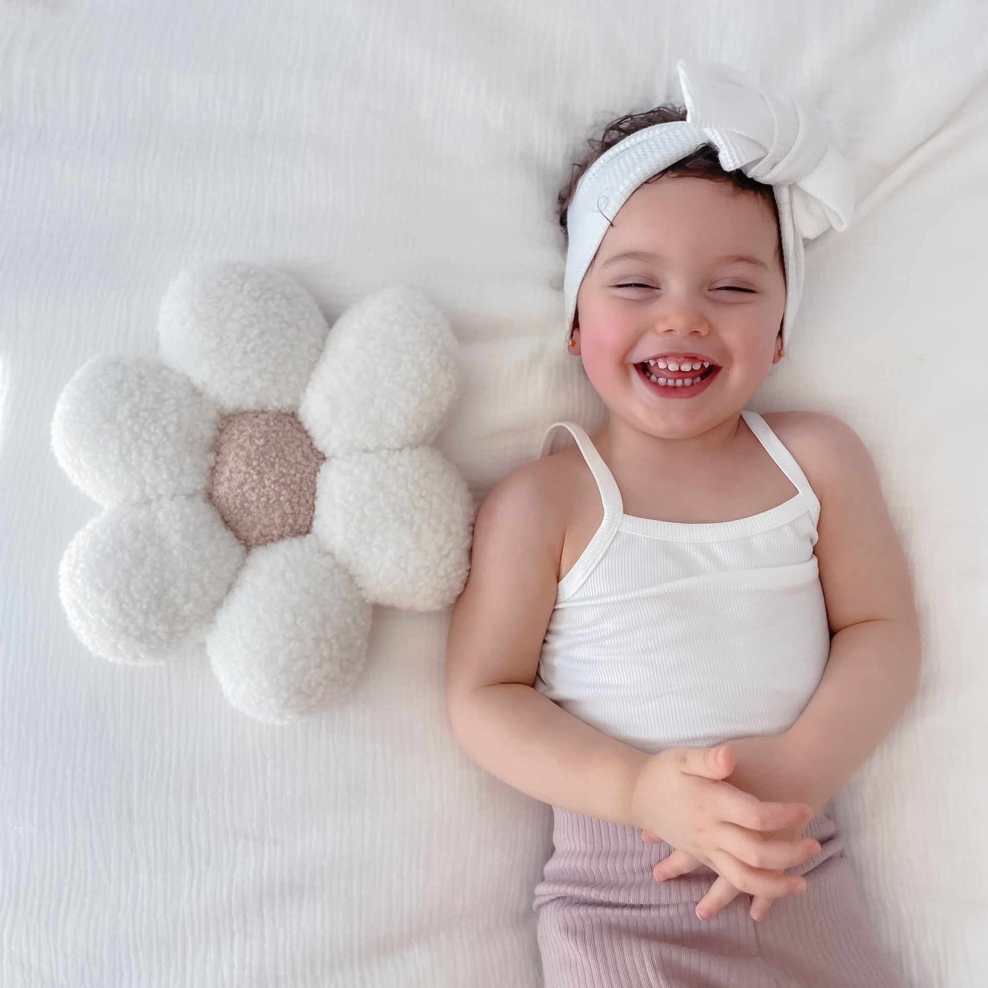 Handcrafted from soft teddy fabric, this flower cushion adds a touch of warmth and coziness to any room. Choose from a variety of colors to match your decor. Perfect for nurseries or as a decorative accent. Each cushion is uniquely made to bring a natural charm to your space.