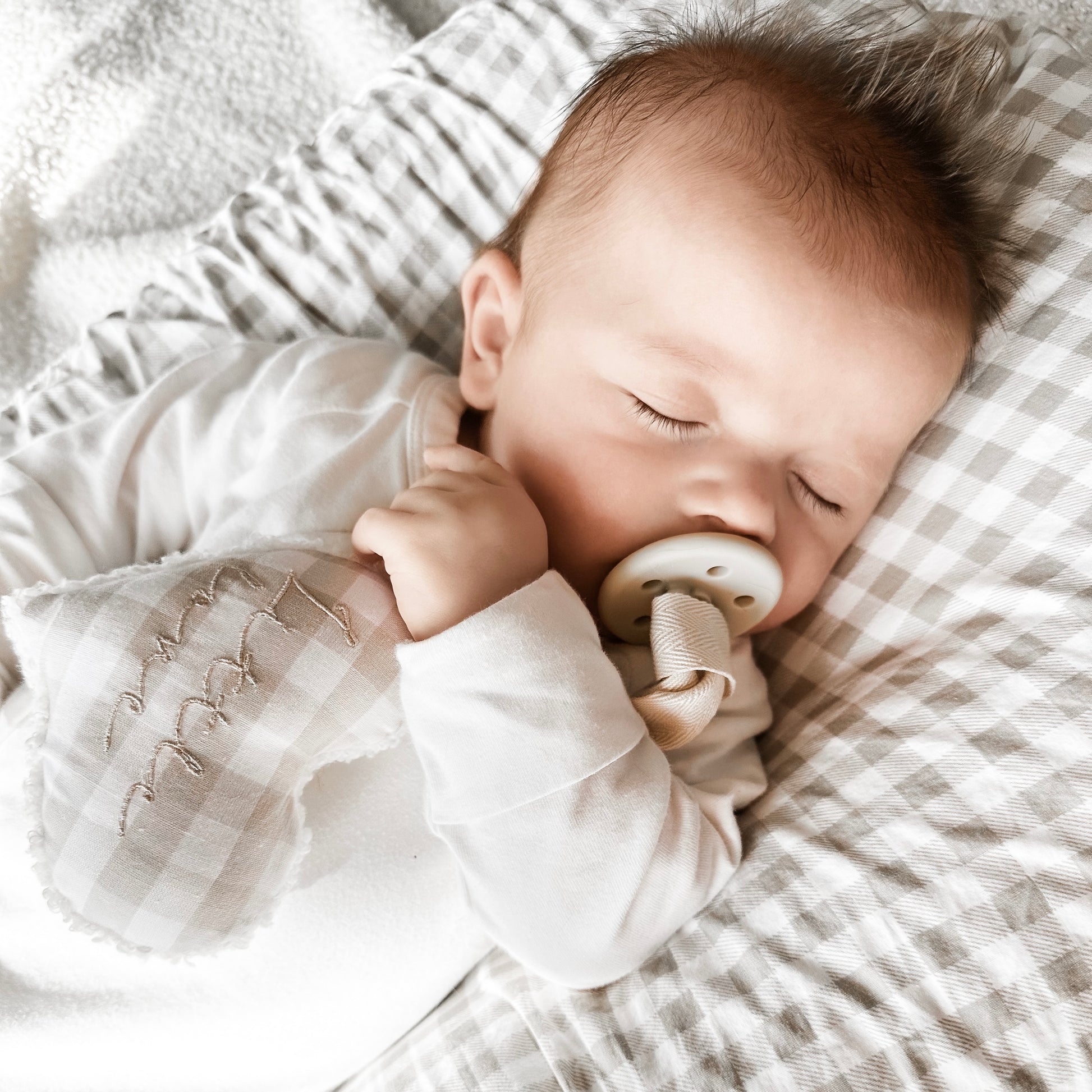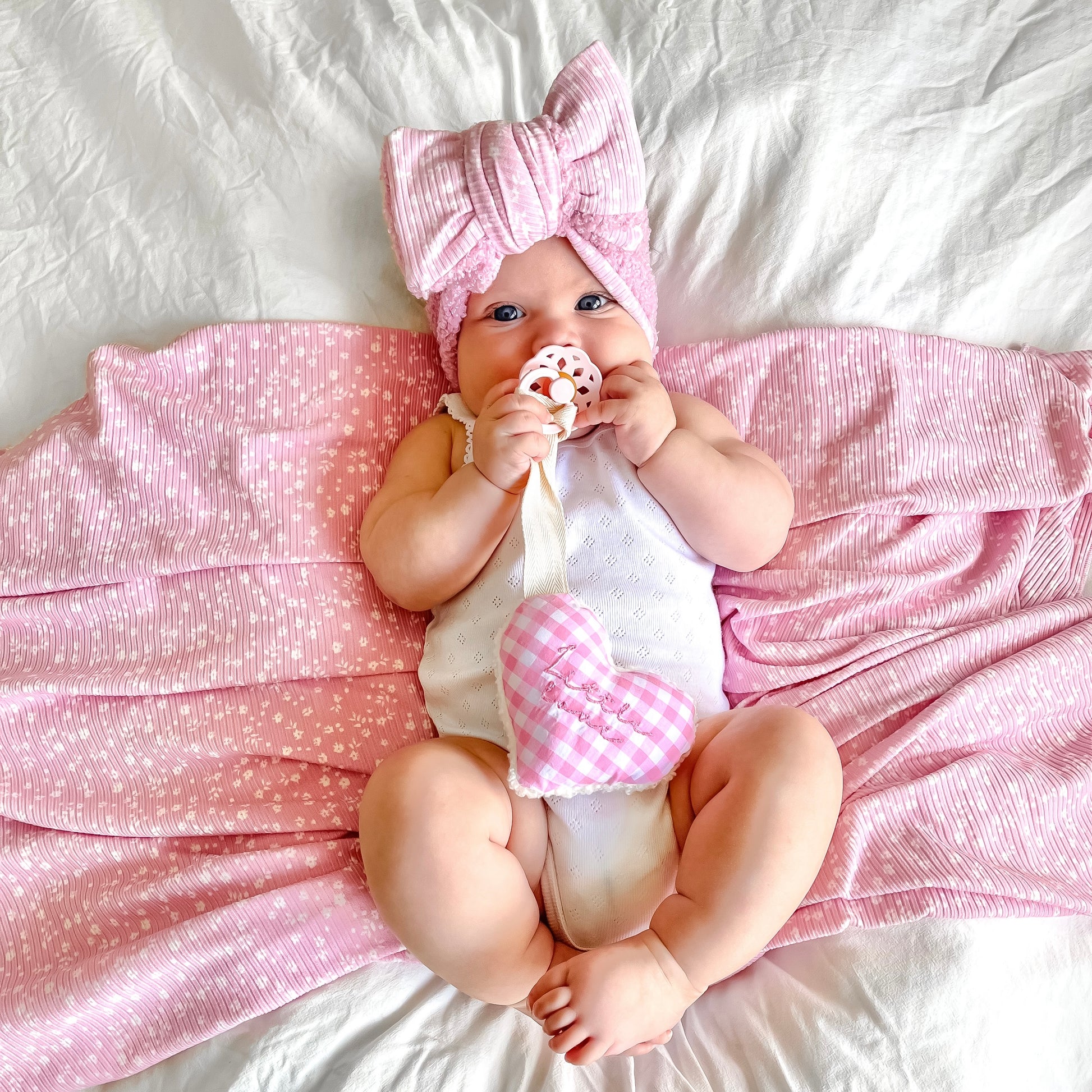 This Little Love Dummy Keeper features a hand-made teddy fabric and cotton blend, keeping your child's dummy safe, secure, and within reach. The cotton fabric is decorated with a Little Love quote that will add a bit of charm to your keeper.