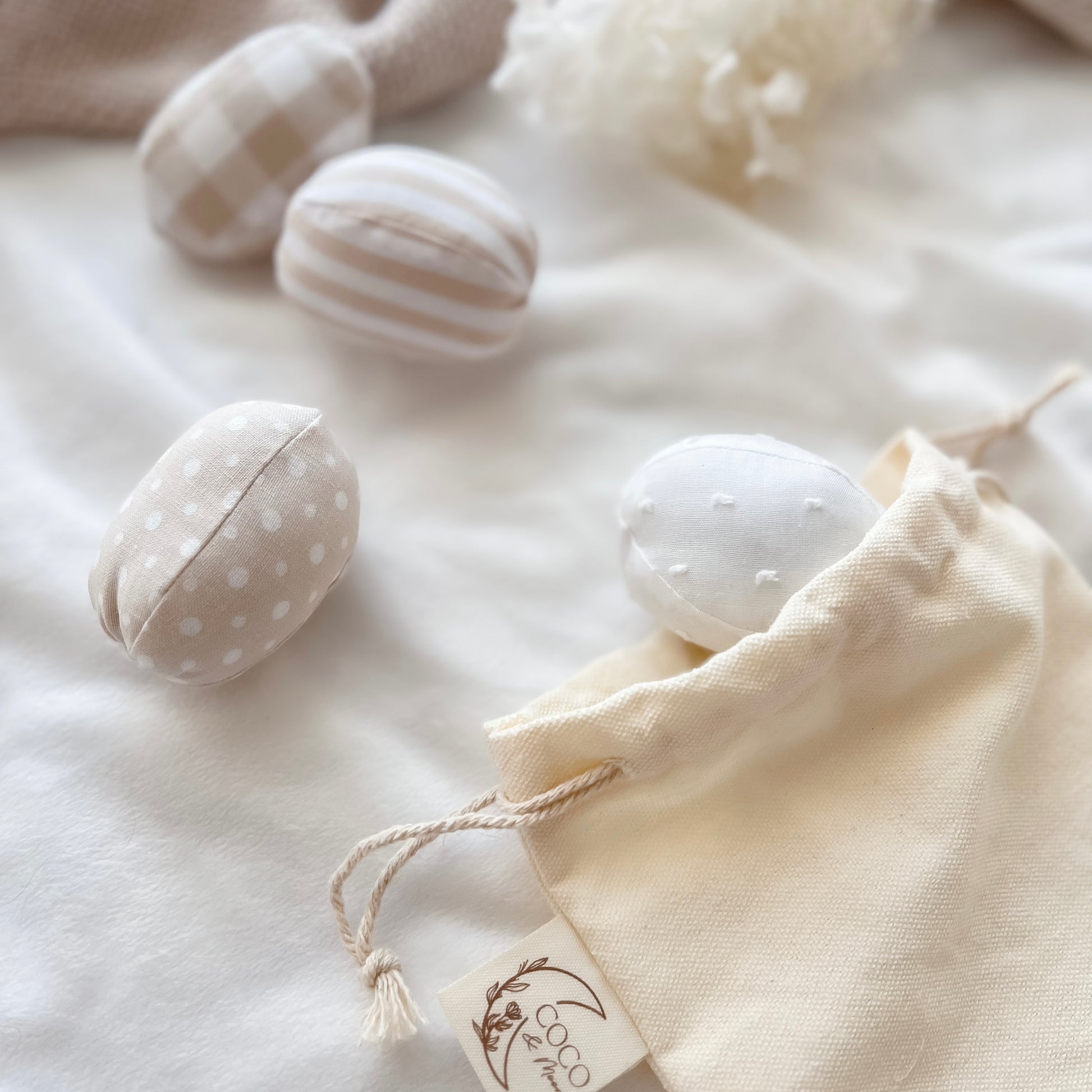 Enhance your child's imagination with our Play Easter Eggs. Handmade from cute fabric, this set of four eggs comes in a range of colors and is perfect for pretend play. Provides hours of fun and encourages creativity!