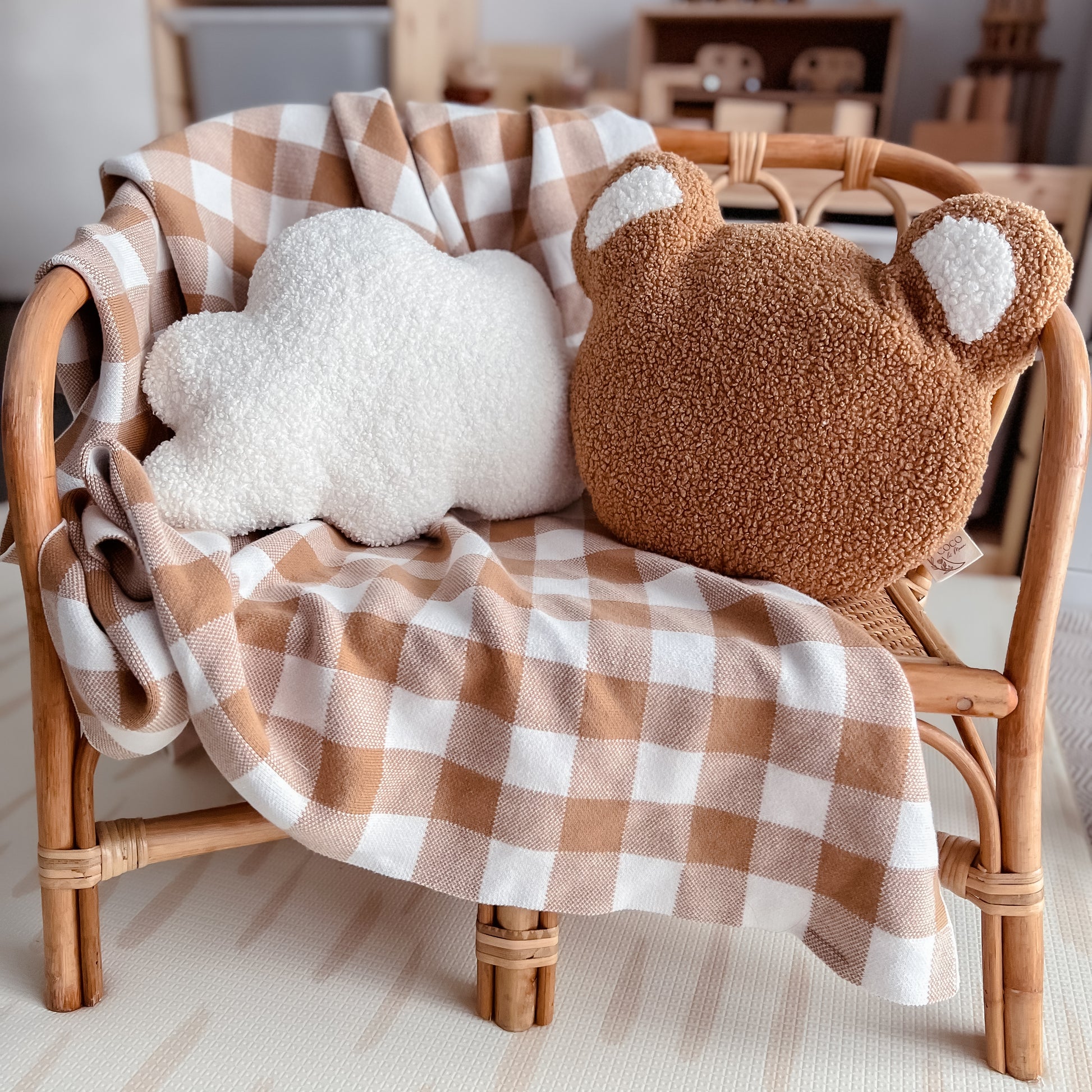 Introducing our Teddy Cushions, handcrafted from soft, high-quality teddy fabric. These cute and cozy cushions are perfect for adding a touch of warmth and charm to any baby or children's room. Experience the comfort and style of our Teddy Cushions today.